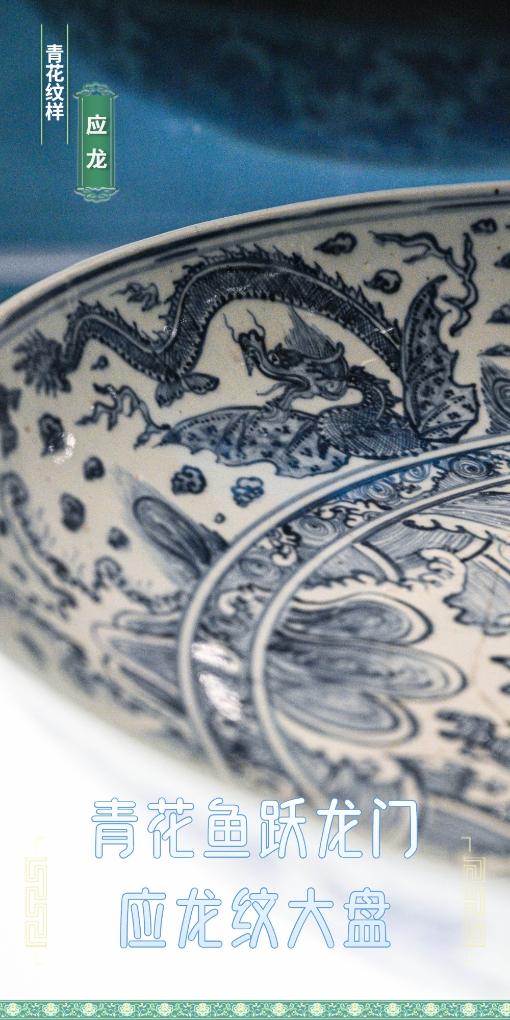 在这只青花鱼跃龙门应龙纹大盘内壁
