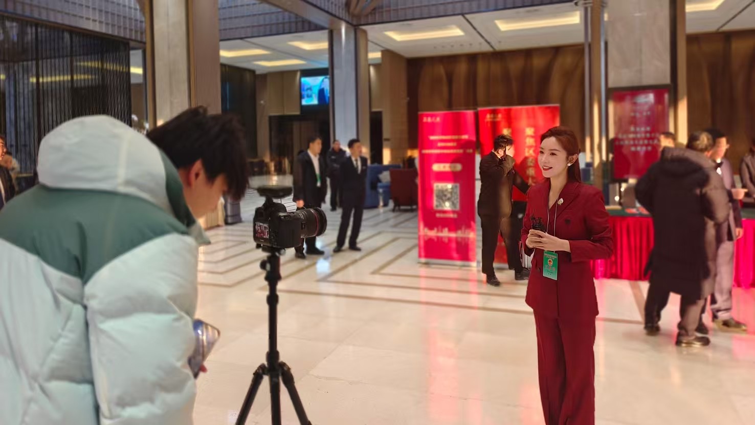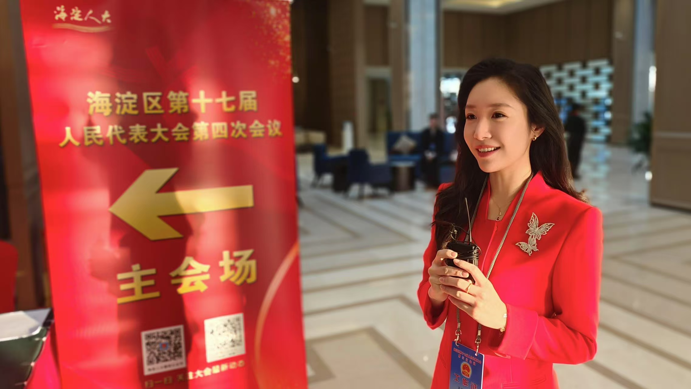 在海淀区两会上,作为记者出镜报道