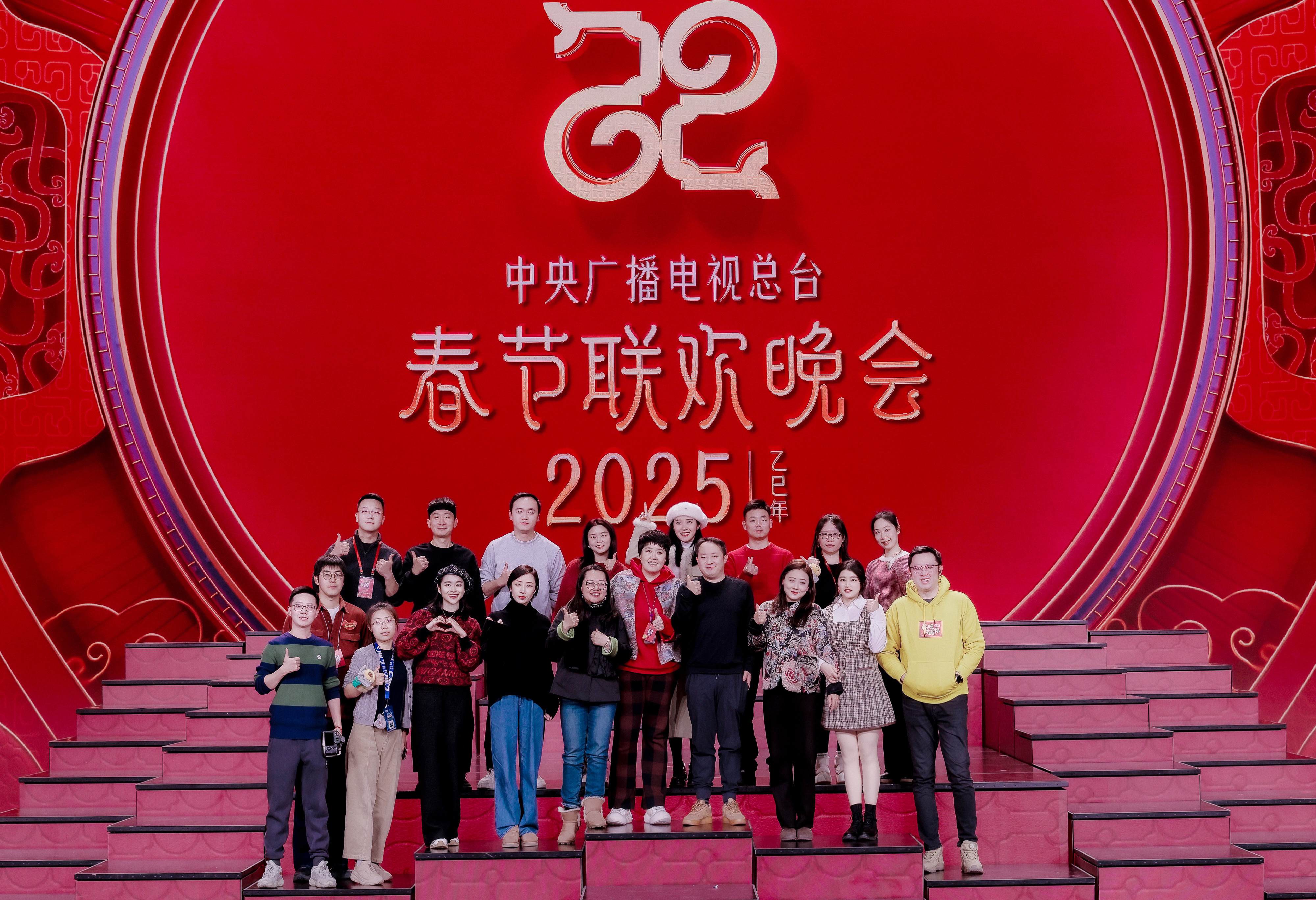 2025年团队和总台春晚总导演在春晚舞台合影(前排右三为胡雅琼)