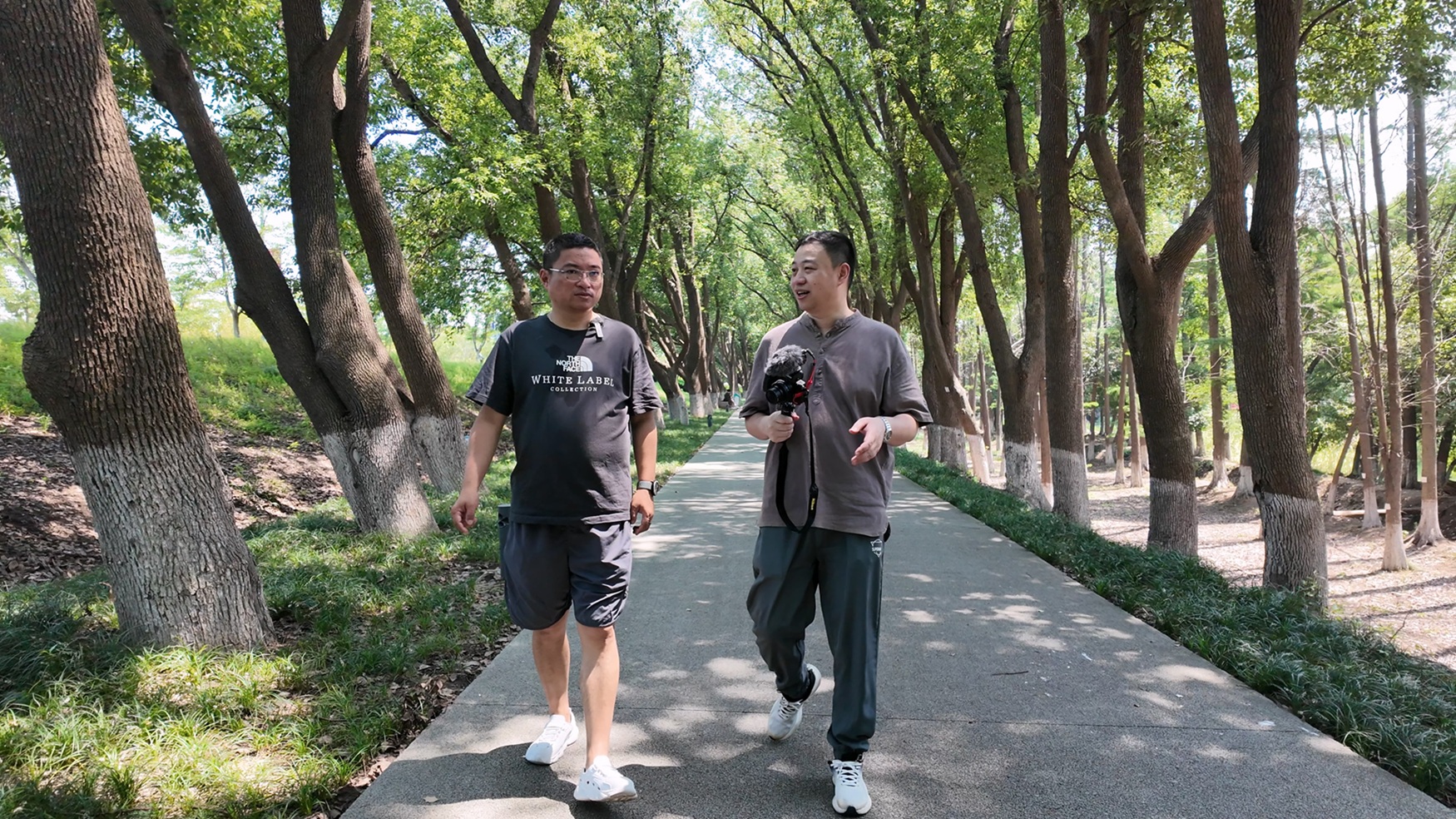 2025年,张兰飞在苏州湾万公堤采访《太湖主理人》