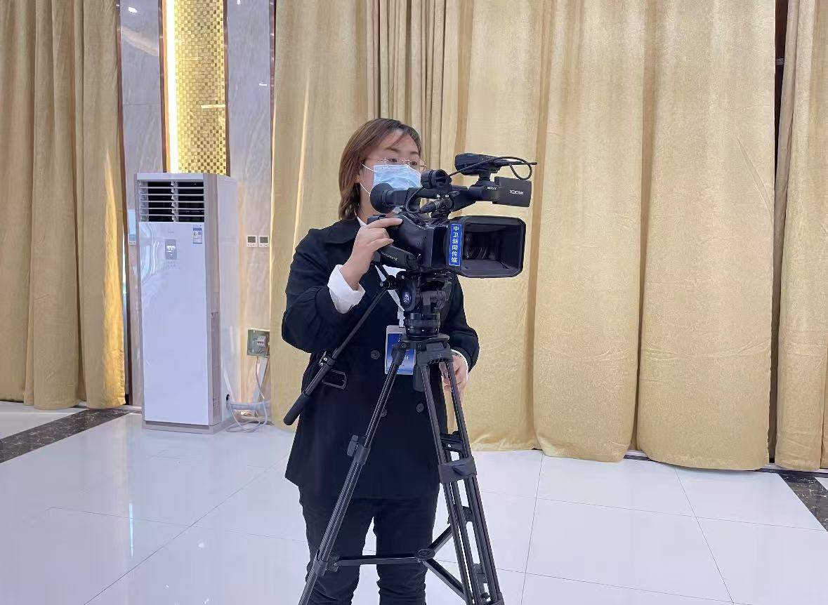 中卫市新闻传媒中心记者杨珮珮进行中卫市两会采访报道。