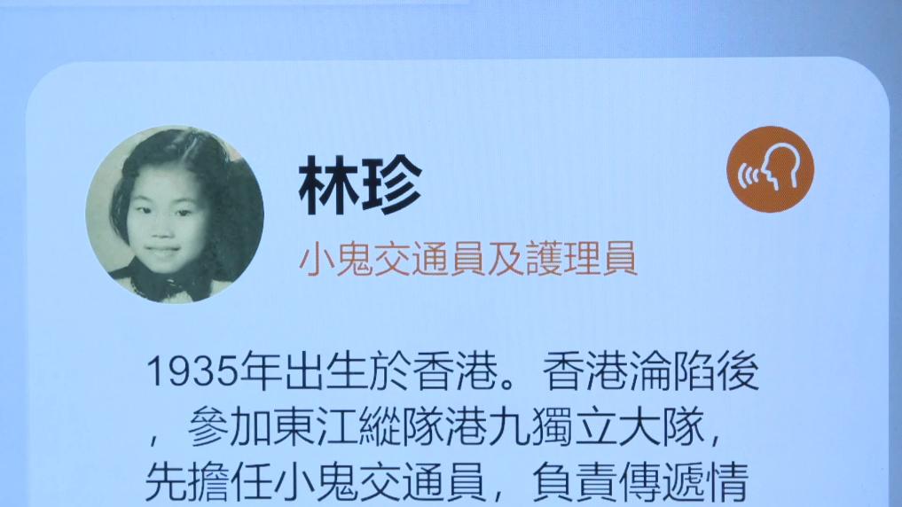 抗战胜利后,林珍北上求学。1977年回港时,发现年轻人对港九大队的历史一无所知。自此,她成了讲述抗战历史的“火炬手”,在历史遗迹与校园间奔走宣讲。