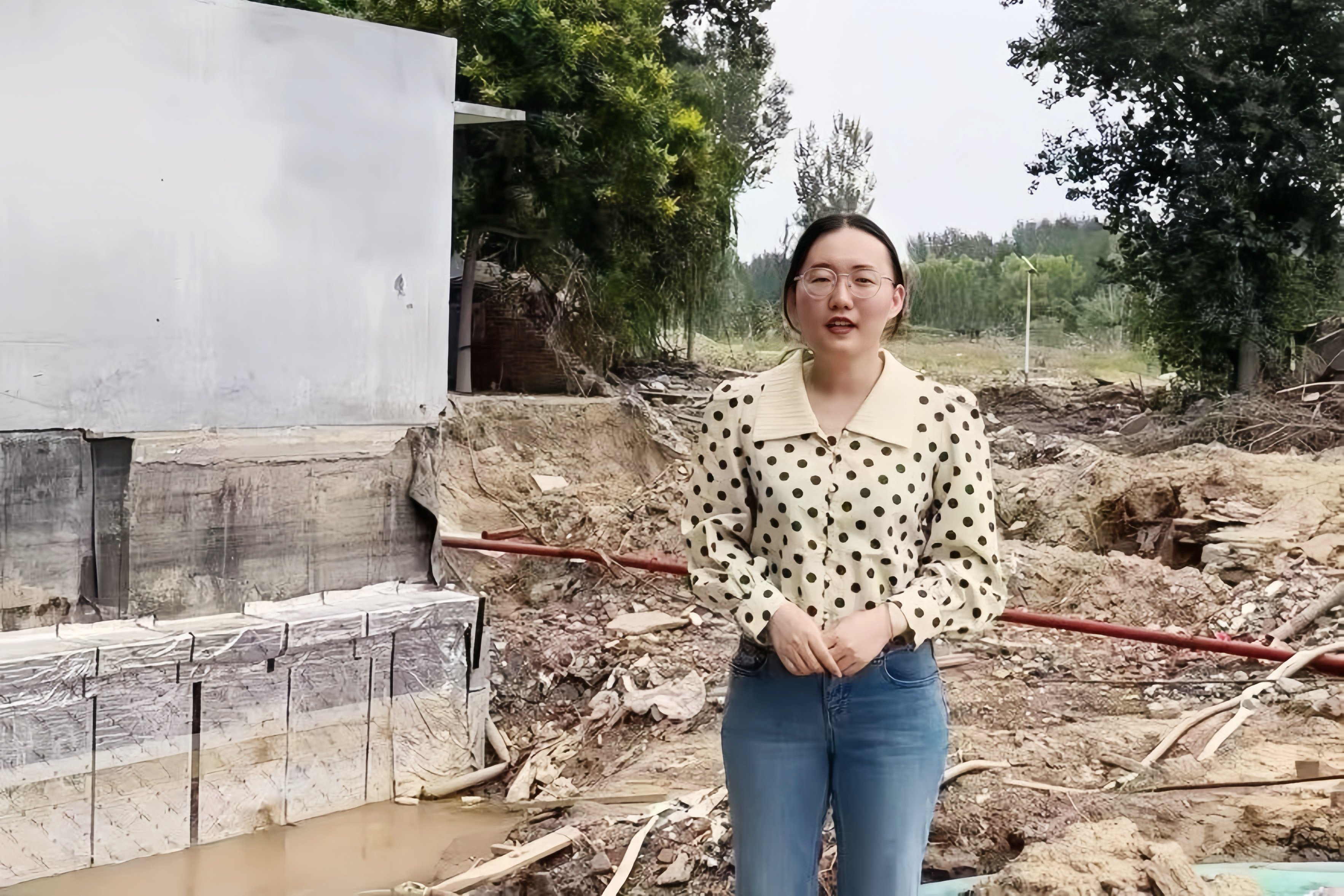 南方都市报记者韦娟明正在河北涿州采访抗洪抢险。