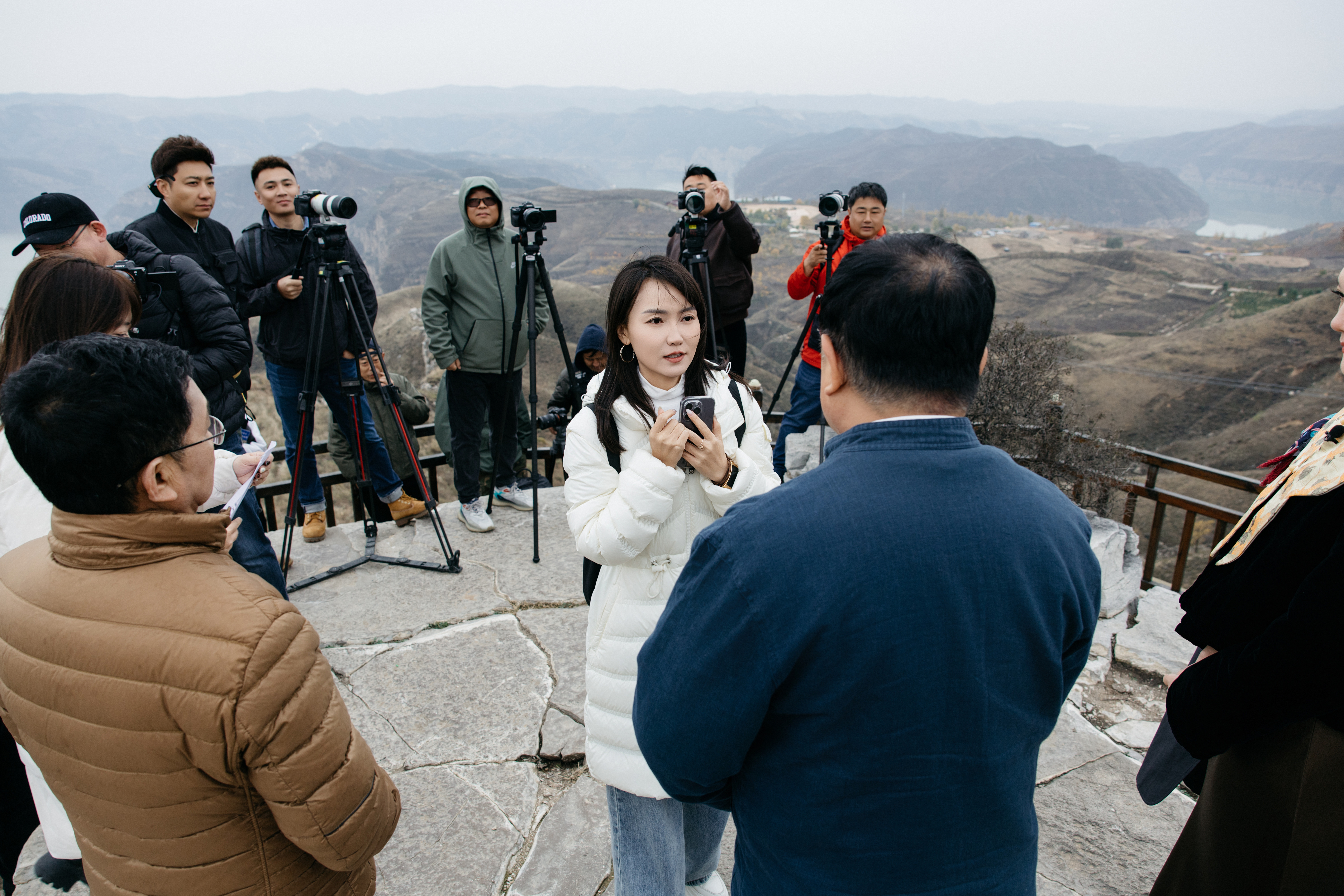 在鄂尔多斯市准格尔旗黄河大峡谷就“黄河与中华龙文化”相关话题采访节目嘉宾文化学者单霁翔、当代作家阿来