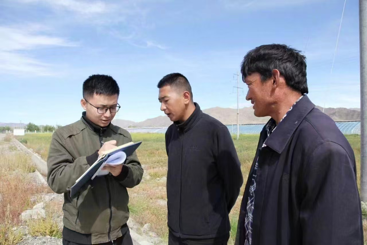 农民日报社王壹(左一)在西藏日喀则市白朗县采访.