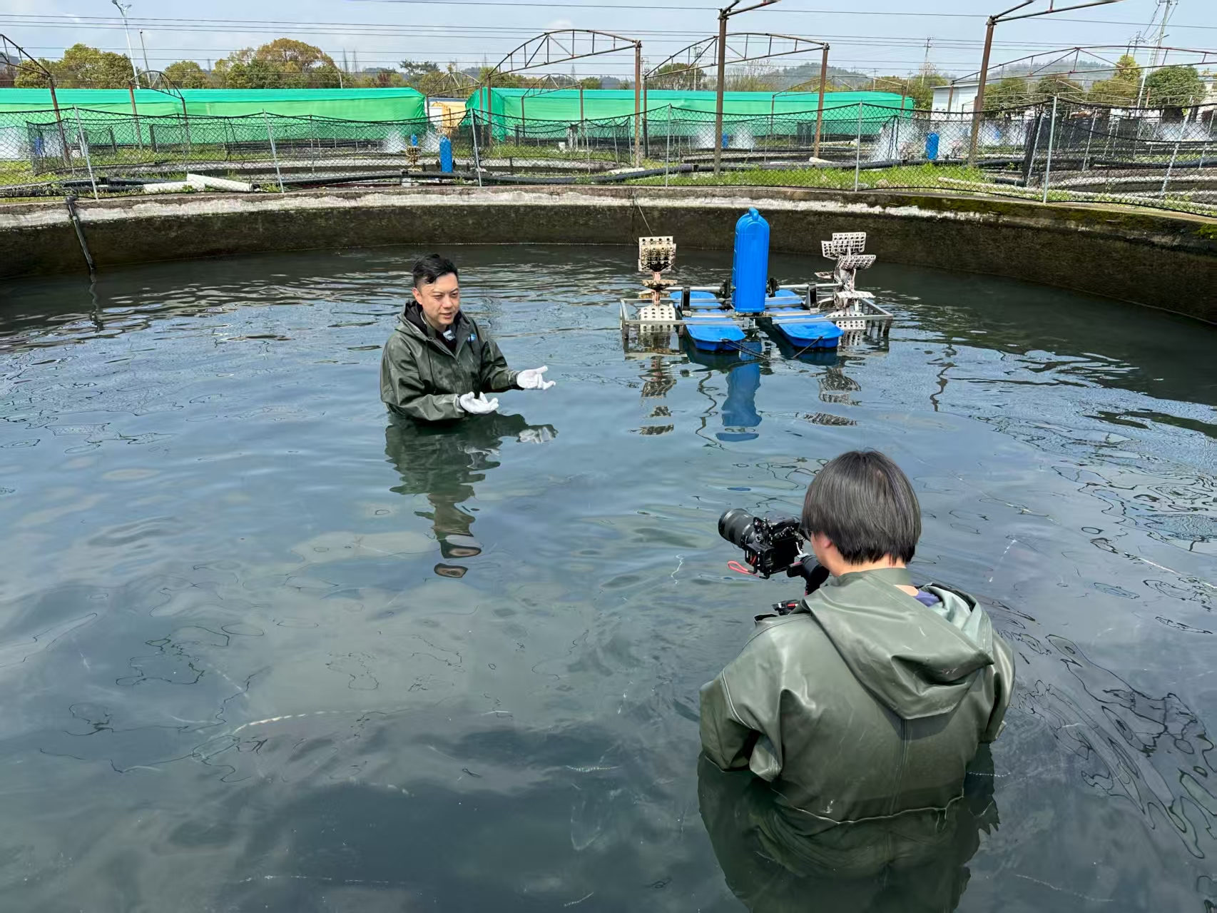 2024年5月,总台记者郭嘉宁在中国最大鱼子酱生产基地报道