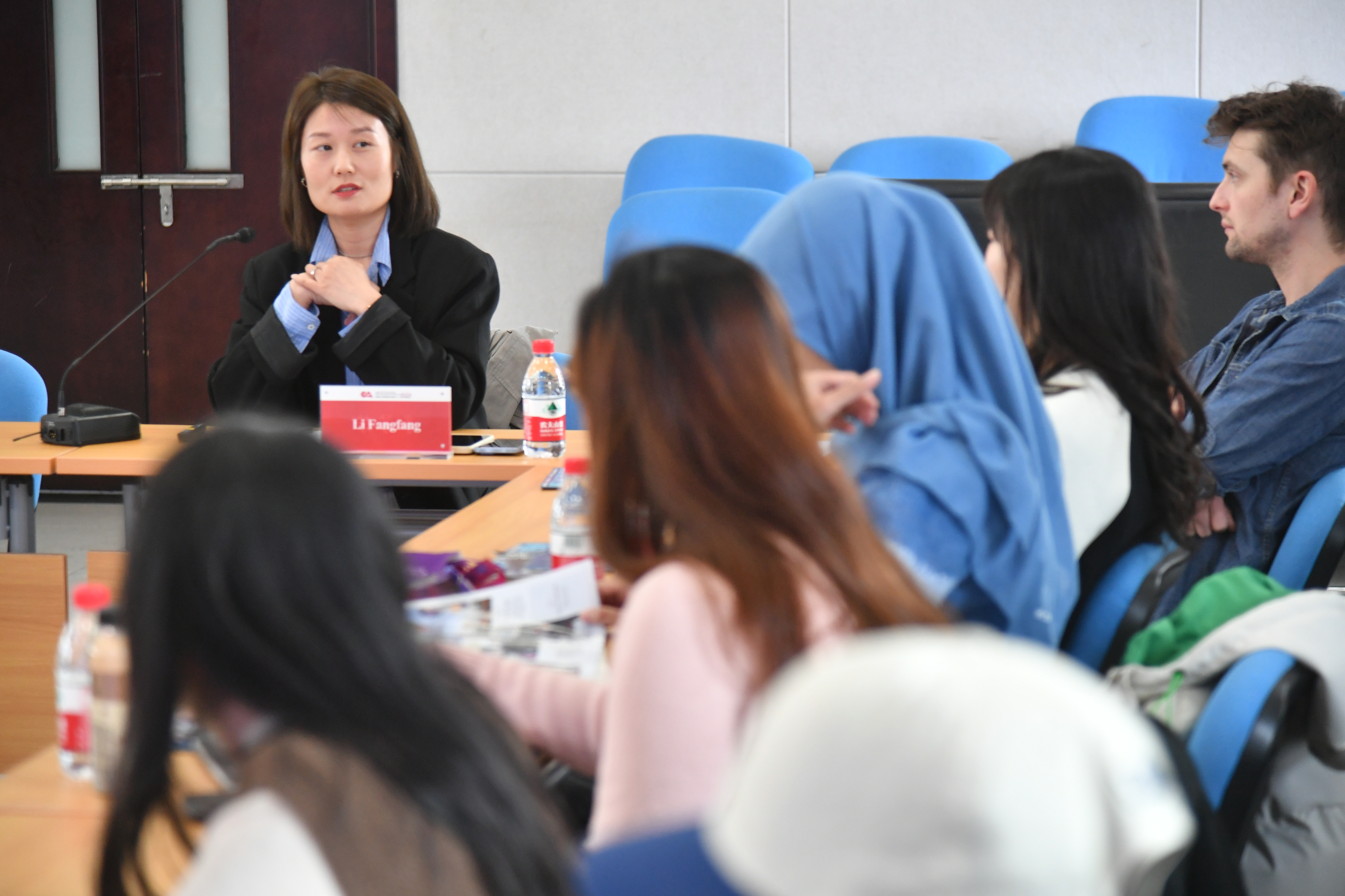 2023年3月,清华大学全球财经新闻硕士项目海外留学生来访,李芳芳作为记者代表进行交流