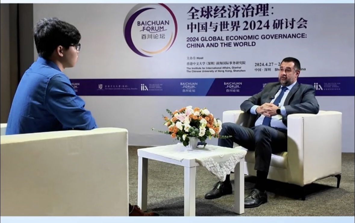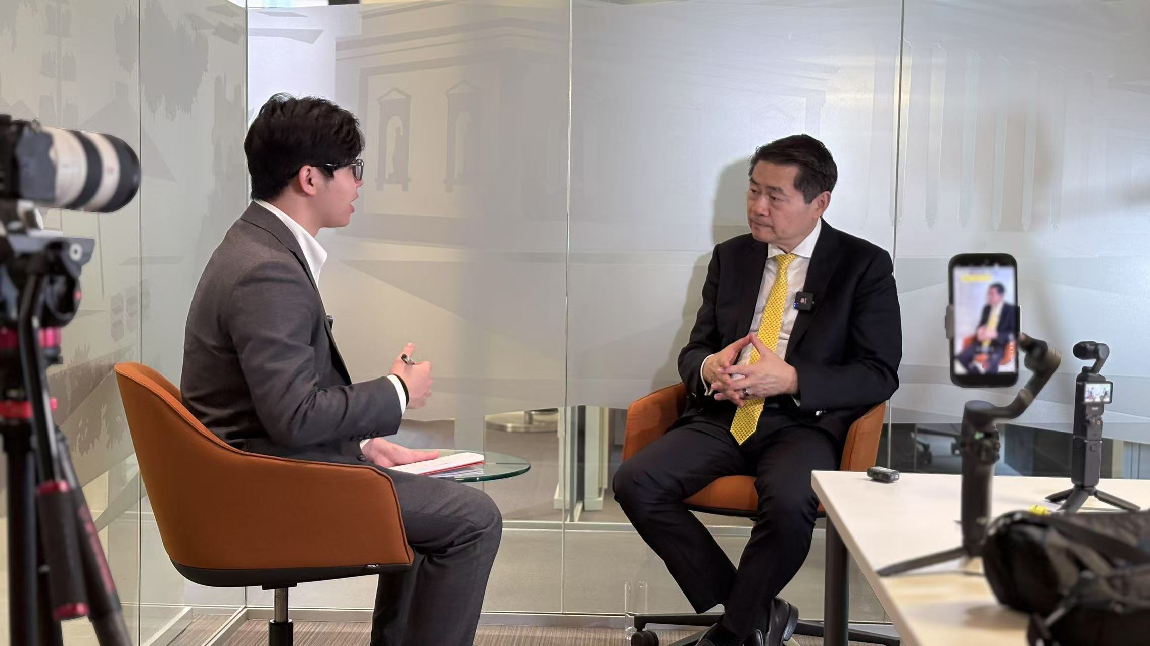 在某学术论坛期间采访外籍专家