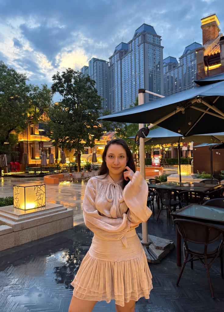 7月2日,哈萨克斯坦留学生黄琳娜在天津游览。新华社发