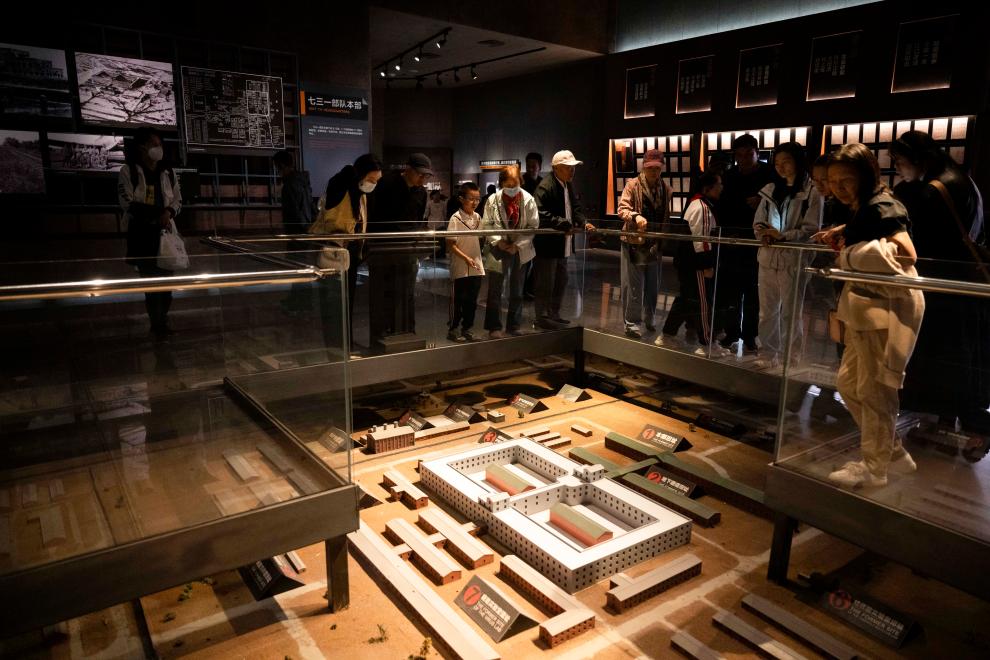 9月18日,参观者在侵华日军第七三一部队罪证陈列馆参观。新华社记者 王建威 摄