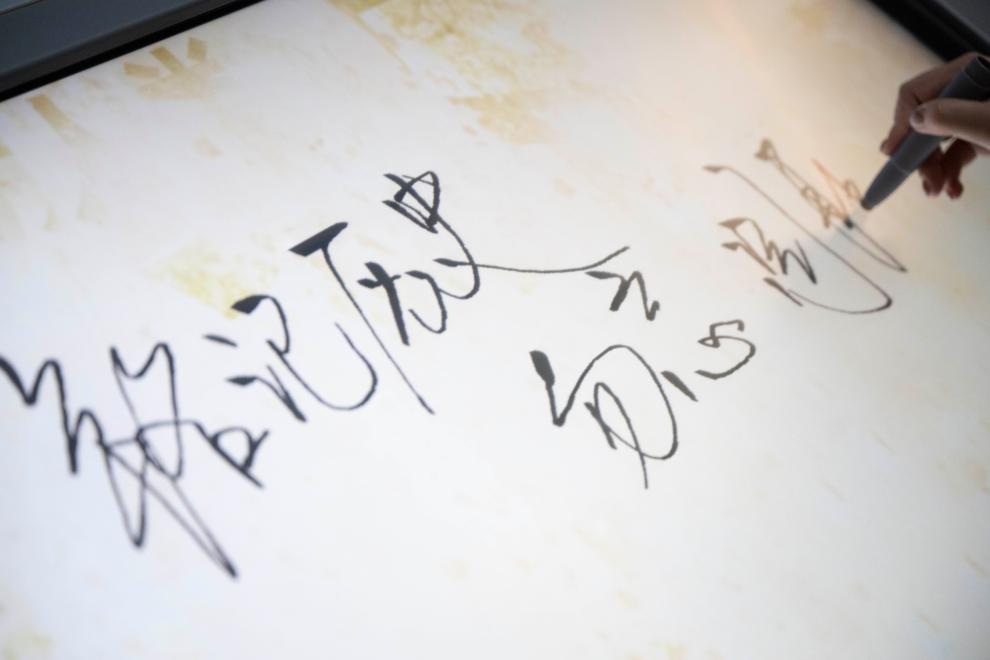 参观者在侵华日军第七三一部队罪证陈列馆内留言。新华社记者 张涛 摄