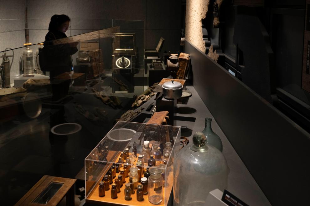 参观者在侵华日军第七三一部队罪证陈列馆内观看实验用品。新华社记者 张涛 摄