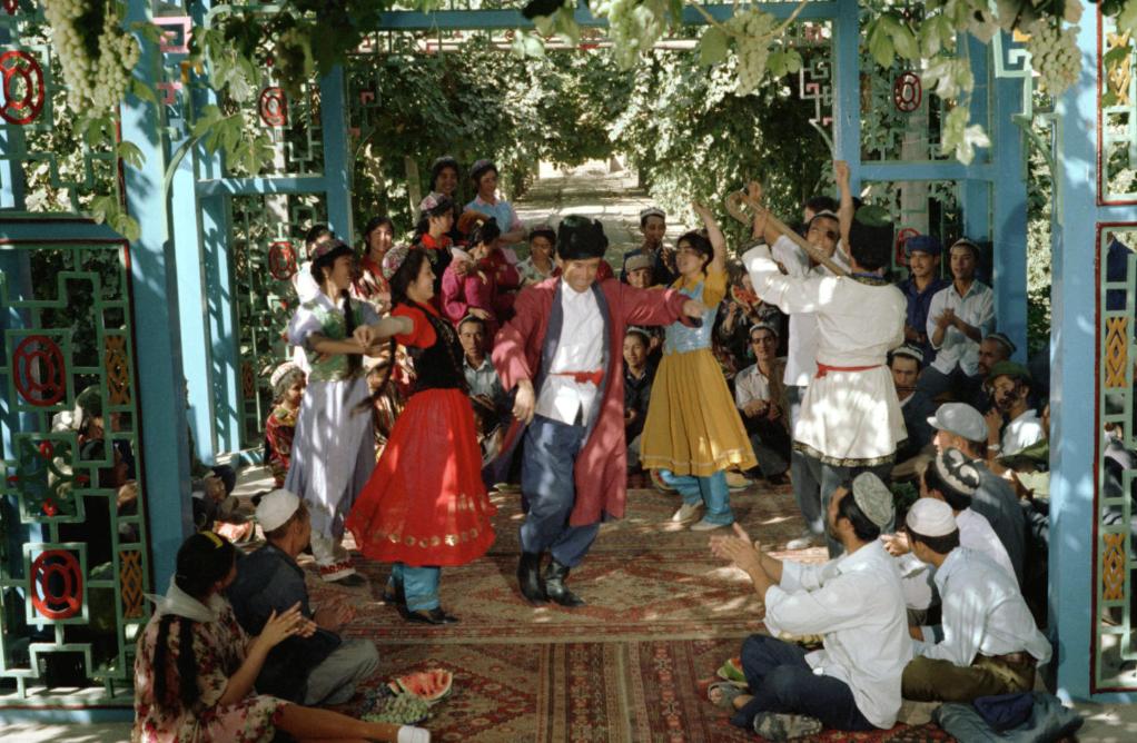 秋收之后,能歌善舞的新疆农民们在葡萄园内婆娑起舞(1981年4月20日发)。
