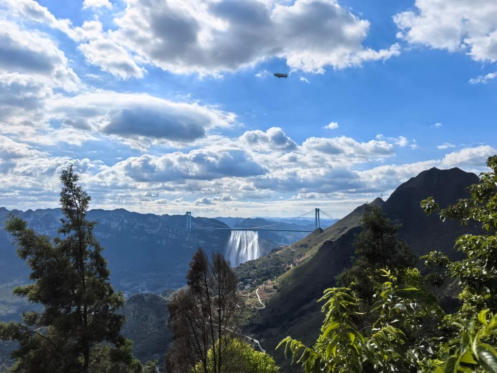 图为“祥云”AS700载人飞艇与花江峡谷大桥的合影。(受访单位供图)