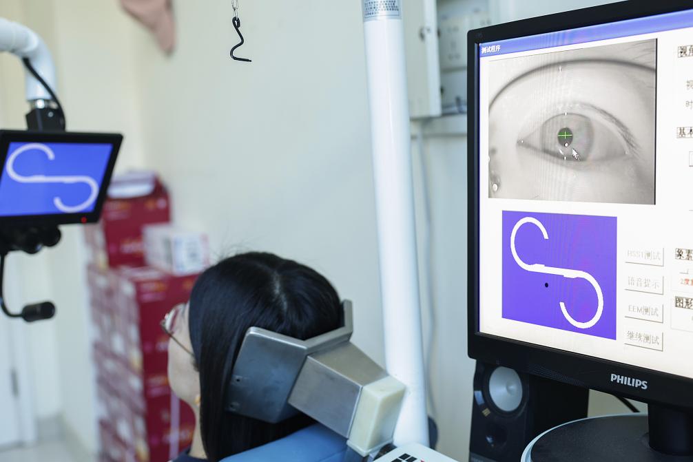 一名女士在北京安定医院门诊的眼动检测室内做检查。新华社记者 张玉薇 摄