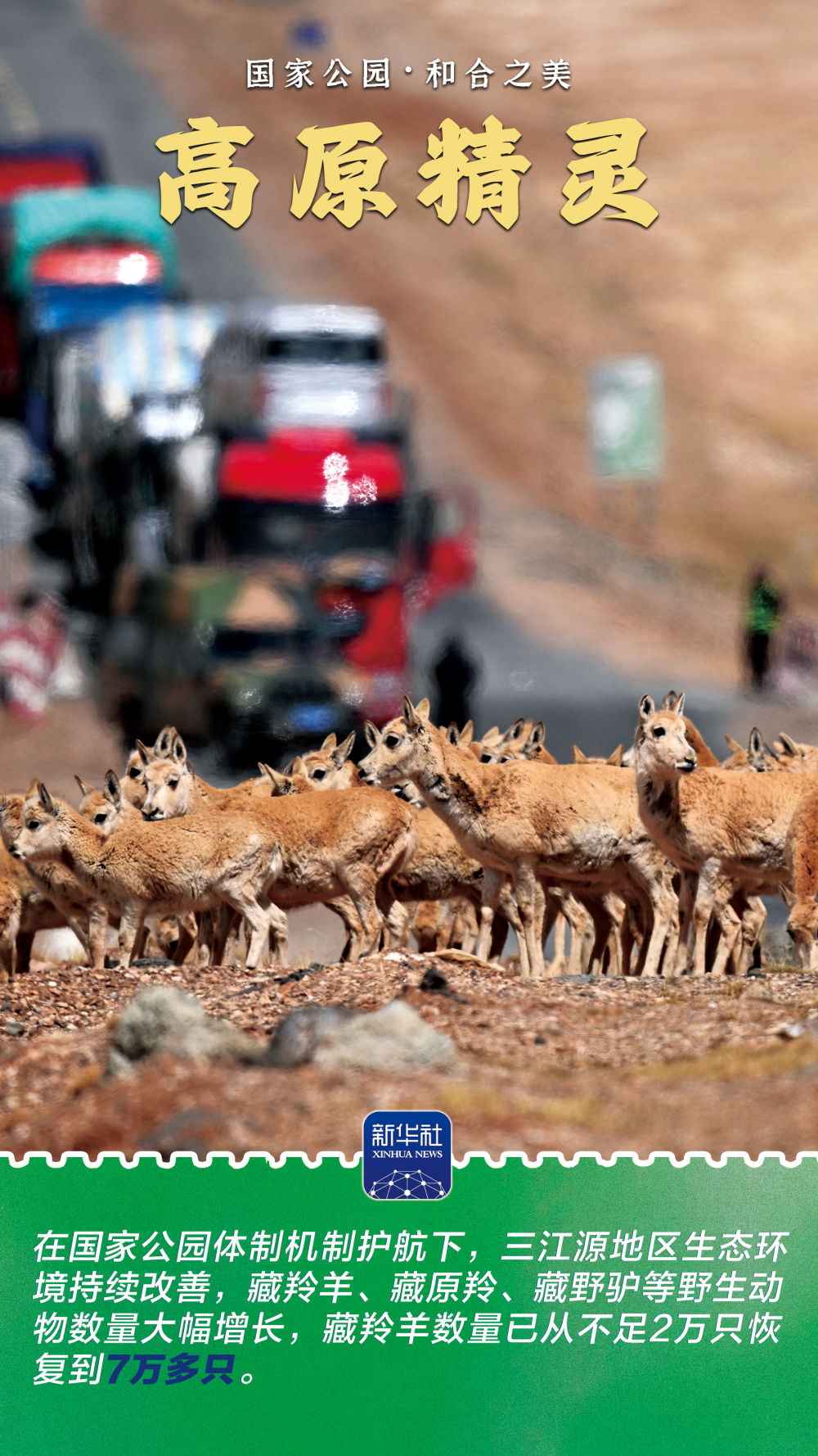 位于青藏高原腹地的三江源国家公园,是长江、黄河和澜沧江的发源地。这里是“高原精灵”藏羚羊的家园,也是高原珍贵生物的基因宝库;这里有冰川林立的奇观,也有千湖映雪的美景。