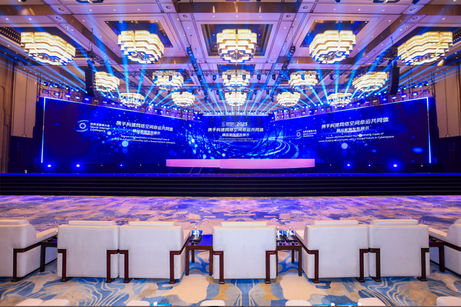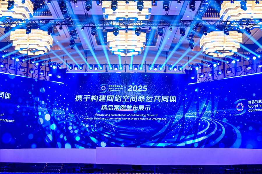 2025年“携手构建网络空间命运共同体精品案例”发布展示活动11月6日下午在浙江乌镇举办。图为发布展示活动现场。新华网 发