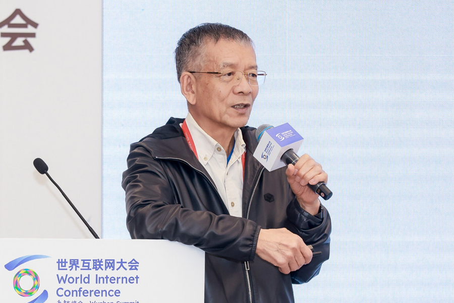 2025世界互联网大会乌镇峰会网络信息技术产业生态发展论坛11月8日上午在浙江乌镇举办。图为浙江大学信息学部主任吴汉明作题为《高校IC实验公共平台在AI时代的角色》的主旨演讲。新华网 发