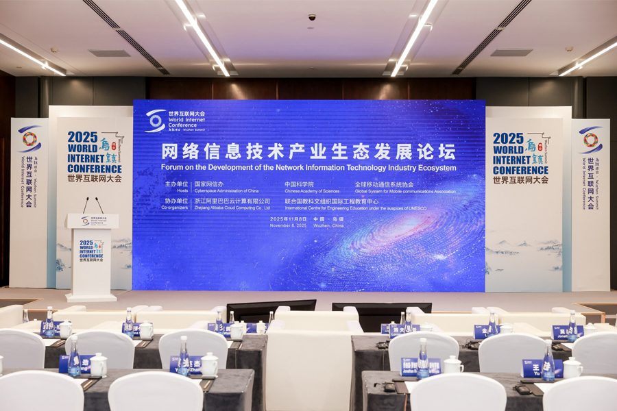 2025世界互联网大会乌镇峰会网络信息技术产业生态发展论坛11月8日上午在浙江乌镇举办。图为论坛活动现场。新华网 发