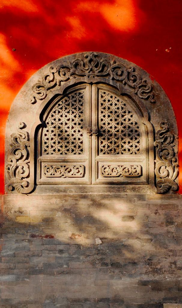 红墙雕窗刻细纹