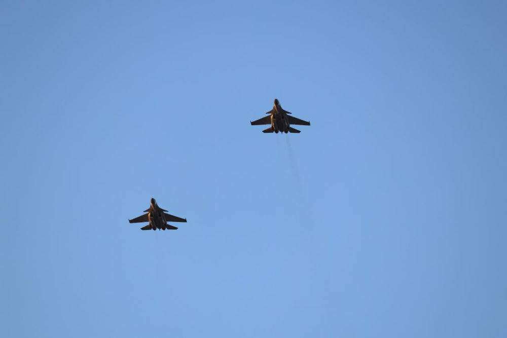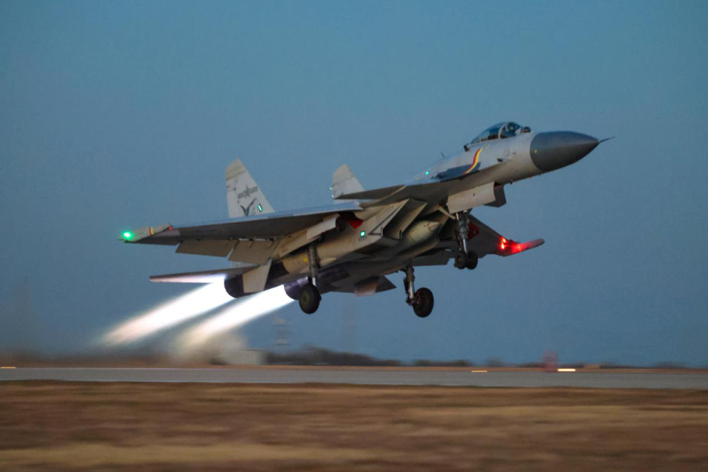 近日,海军航空大学某基地多架歼-15战机加力滑行,呼啸升空,一场多课目跨昼夜飞行训练拉开序幕。