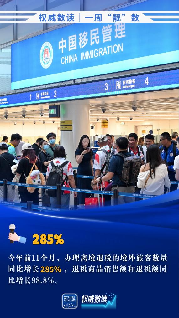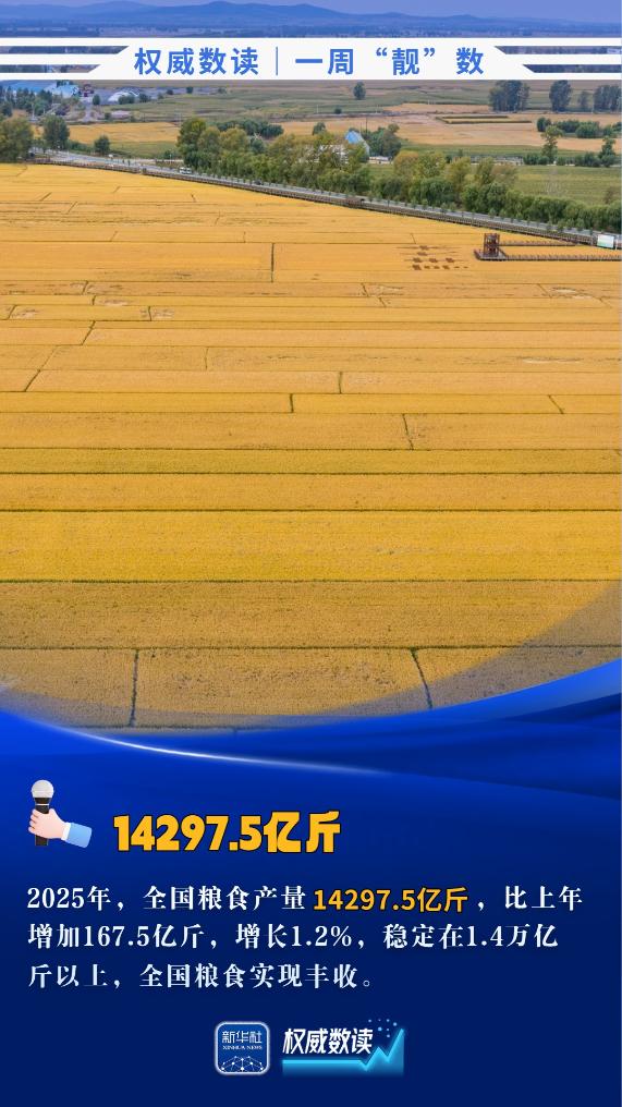 2025年,全国粮食产量14297.5亿斤,同比增长1.2%;今年前11个月,办理离境退税的境外旅客数量同比增长285%;前11个月,我国汽车产销量双超3100万辆……本周,这些数据最值得关注!