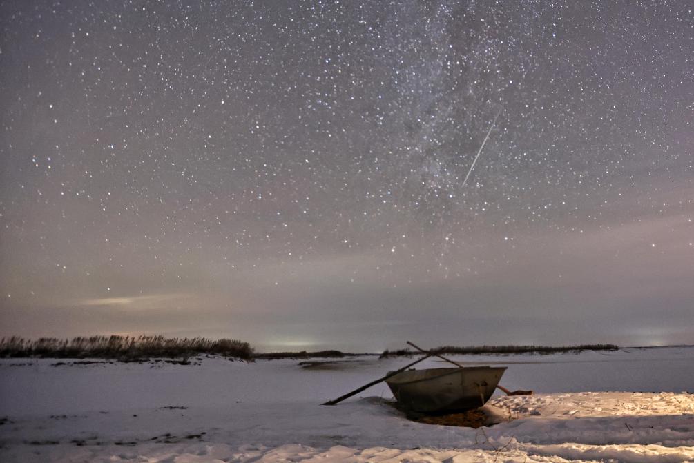 12月13日在黑龙江省桦川县拍摄的双子座流星雨。新华社发(朱宗强摄)