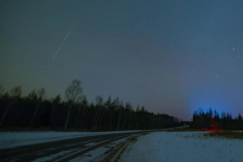 12月14日凌晨在黑龙江省伊春市伊美区拍摄的双子座流星雨。新华社发(李佳星摄)