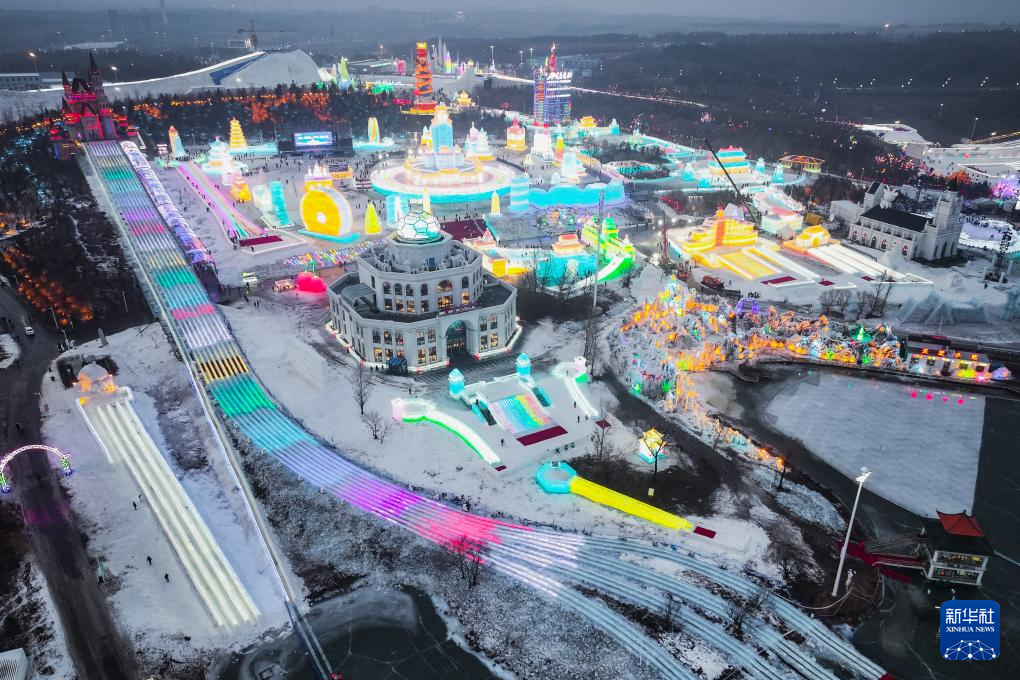 第七届长春冰雪新天地于当晚正式开园迎客。吉林省建设集团相关负责人介绍,本届园区以“冰雪福耀中华·民族大团结”为主题,在占地156万平方米的园区内,除巧夺天工的巨型冰雪雕塑群外,还打造了76万平方米的冰雪游乐空间,配套建设60余条风格各异的冰雪滑梯及30多种趣味游乐设施,为游客提供丰富多元的冰雪娱乐体验。