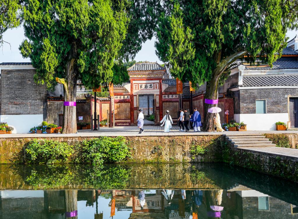 游客在钓源古村参观游玩。新华社发