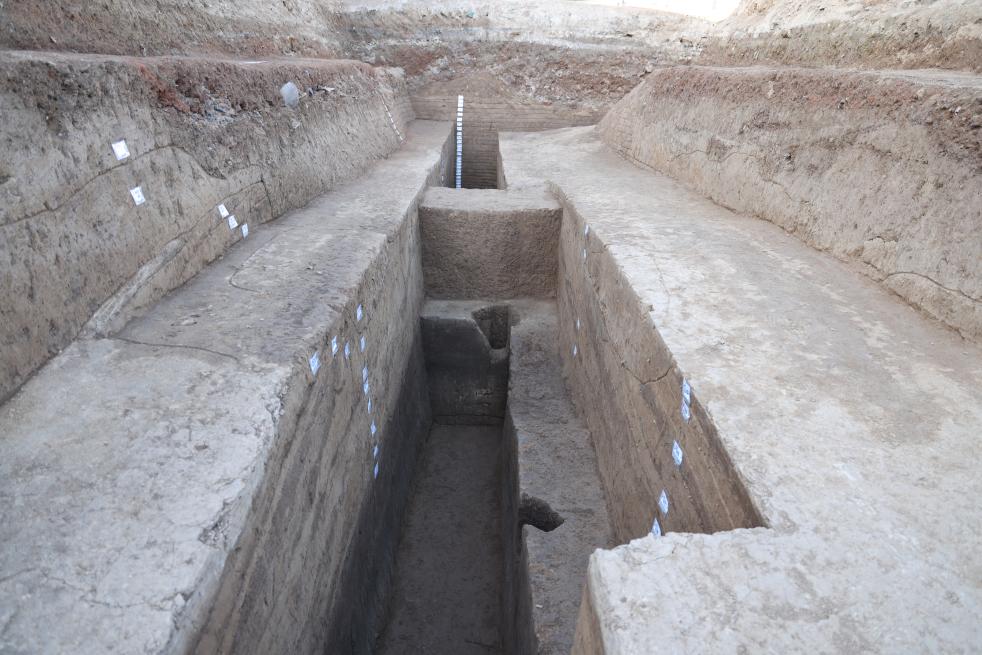 这是阿房宫台基夯土南缘及版筑柱洞。(阿房宫与上林苑考古队供图)