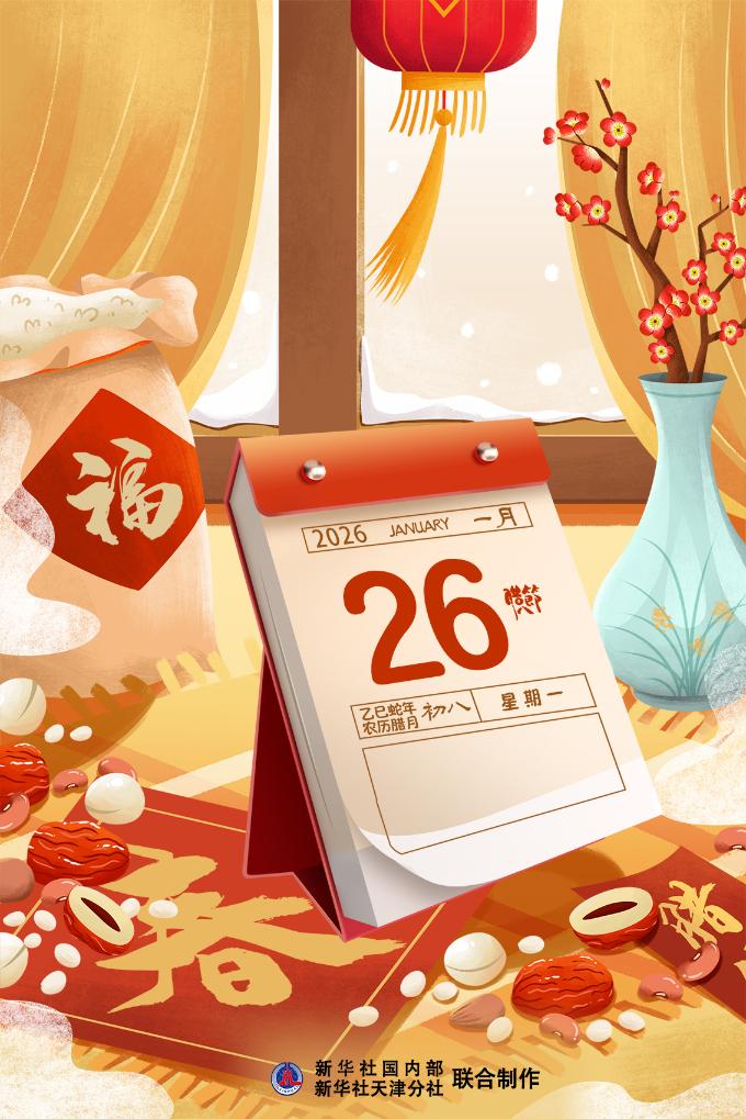 新华社天津1月24日电(记者周润健)1月26日,适逢农历的腊八,也是今冬五九的第一天。当一碗刚刚出锅的腊八粥端上餐桌时,既有驱寒的热气,也有甜粥的香气,更有绵长的年味。