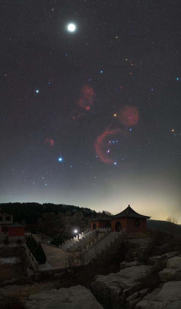 2026年1月15日,在山西阳泉拍摄的明亮木星(左上)。(赵峥嵘摄,星联CSVA供图)