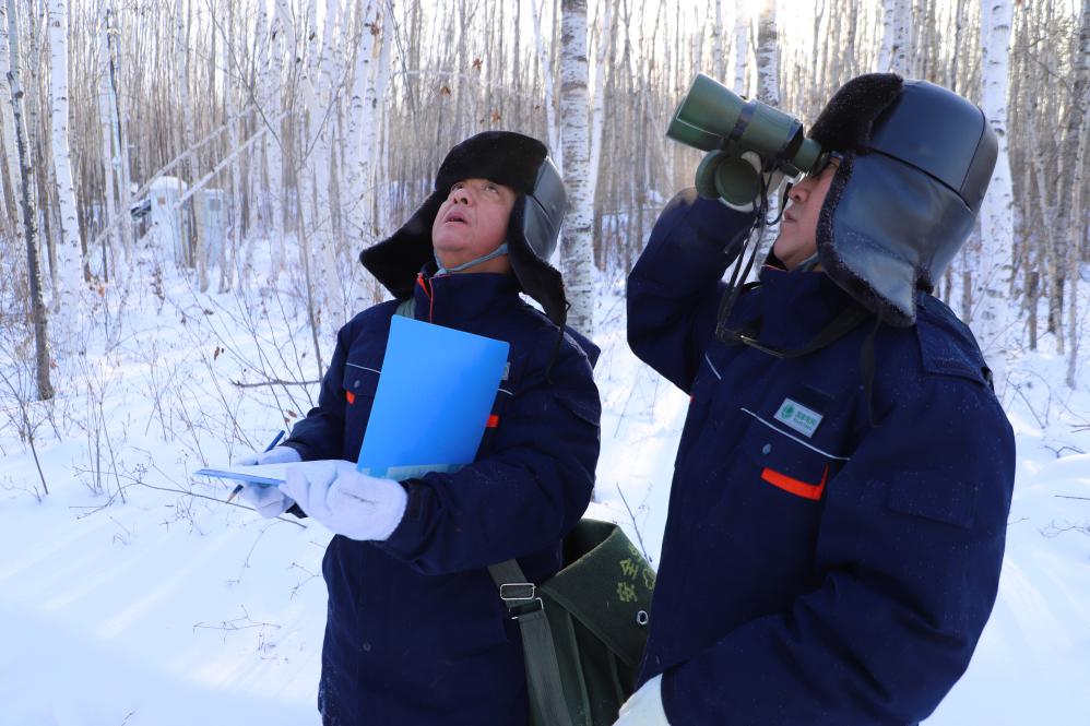 从一个变压器到另一个变压器,两个多小时的巡线路程中,吕建生两人在林海雪原不断跋涉、观察、记录,只有林子深处传来的鸟叫声偶尔打破寂静。