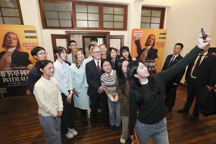 1月31日,英国首相斯塔默与英国演员裴淳华以及上海中学生合影。新华社记者 王翔 摄