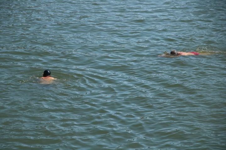 海河里游泳的人。