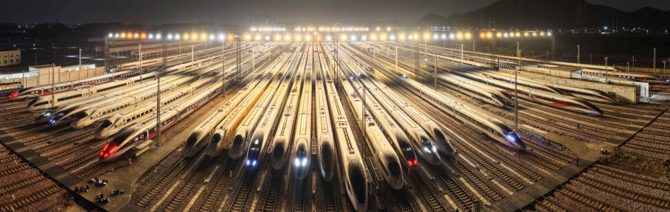 2月1日,动车组列车停靠在广州动车段存车场。新华社记者 邓华 摄