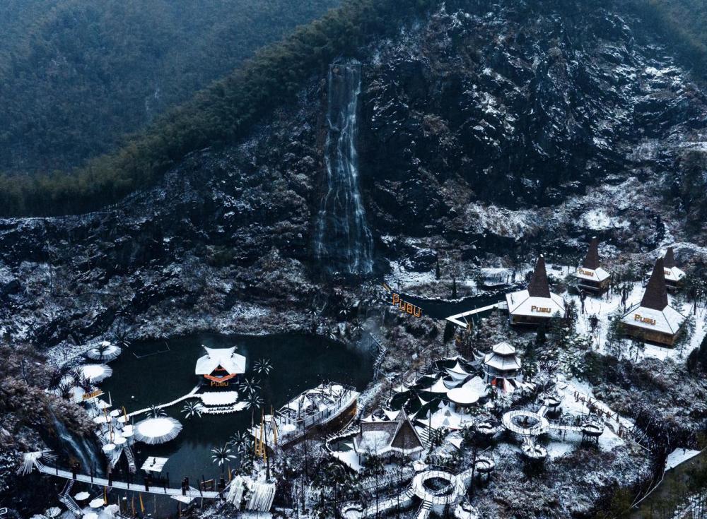 冷水洞矿山遗址改建的“余村瀑布咖啡”。(图片由安吉县委宣传部提供)