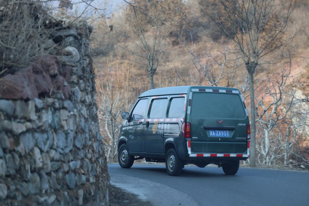 在天津市蓟州区山间行驶的邮政车。新华社记者李然 摄