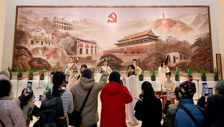2月17日,参观者在中共一大纪念馆内观看民乐演奏表演。新华社记者 方喆 摄