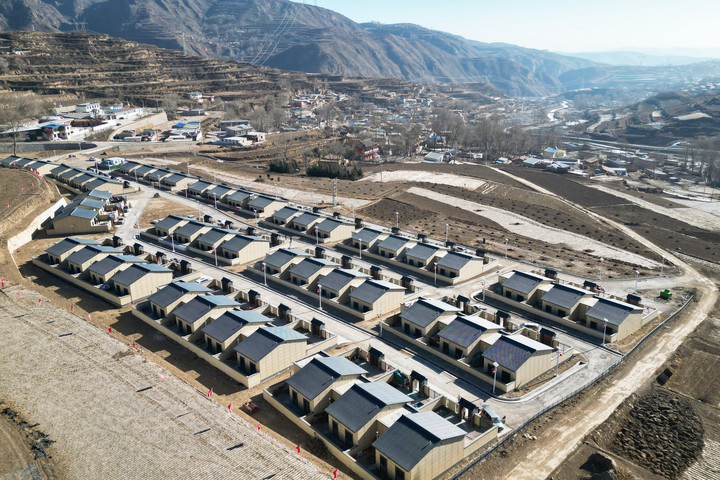 这是2月14日拍摄的甘肃省榆中县马坡乡上庄村安置点(无人机照片)。新华社记者 张智敏 摄