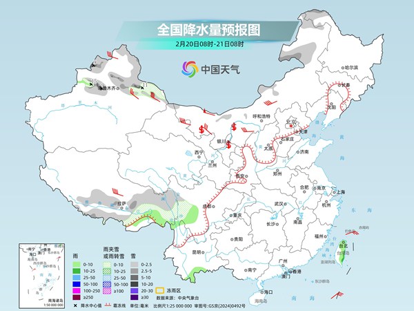 中央气象台预计,今天,新疆北部和东部、内蒙古东北部和中部、黑龙江西北部、西藏南部和东部、川西高原等地部分地区有小到中雪或雨夹雪,局地有大雪。新疆伊犁河谷、西藏东南部、川西高原南部、云南南部、台湾岛大部等地部分地区有小雨,局地中雨。
