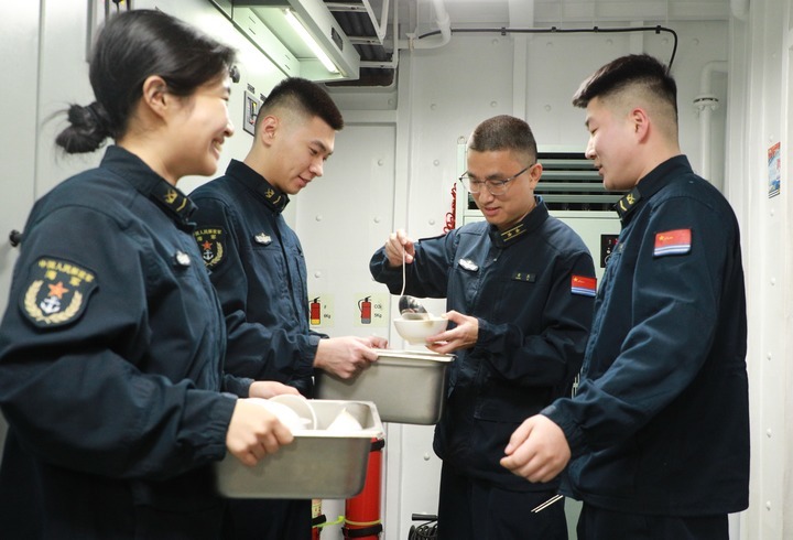 同宋云正一样,舰上许多年轻官兵都是第一次离家过年。离家越远,家在他们心中就越温暖。