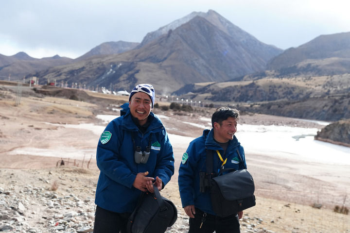 指着远处一处洼地,桑求曲朋说:“约古宗列是水源地,10公里外还有牧民放牧,如果没有其他任务,我们基本每周都要来看一看。”