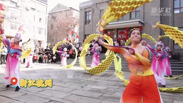 在杭州市余杭区的瓶窑老街,舞龙、花灯、竹马等轮番上演,与热闹的市集一同营造出浓浓年味,吸引大批市民、游客。