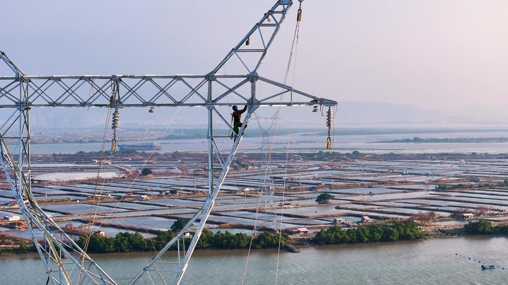 最终,76米高的输电铁塔稳稳立在海天之间。今年春节前,第二电源顺利送电。“听说以后一条线路检修,另一条无缝顶上,增氧机不会停,灯也不会闪。”蔡亚溪说,“心里的一块石头总算落了地。”
