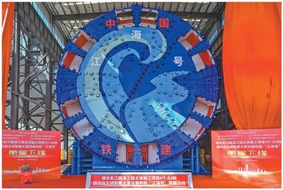 国内自主研制、最大开挖直径达16.64米的超大直径盾构机“江海号”。郭立亮摄(人民视觉)