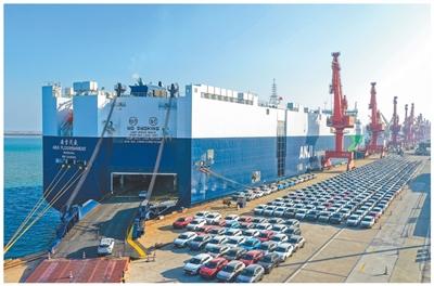 江苏连云港,滚装船正在装运出口新能源汽车等。王健民摄(人民视觉)