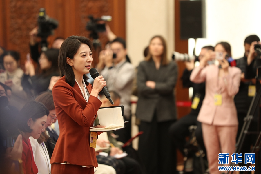 3月3日,全国政协十四届四次会议新闻发布会在北京举行,大会新闻发言人刘结一向中外媒体介绍本次大会有关情况并回答记者提问。图为记者在现场提问。新华网记者 王翰林 摄