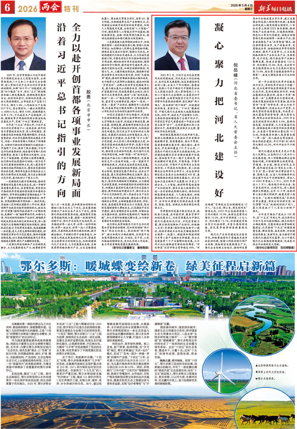 今年是中国共产党成立105周年,是“十五五”开局之年。我们将牢记习近平总书记殷切嘱托,树立和践行正确政绩观,完整准确全面贯彻新发展理念,扎实推动“十五五”时期高质量发展,解放思想、奋发进取,加快建设经济强省、美丽河北,奋力谱写中国式现代化建设河北篇章,为以中国式现代化全面推进强国建设、民族复兴伟业作出新的更大贡献。(新华社记者李凤双 范世辉整理)